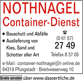 Die Adresse von Container-Dienst Nothnagel lautet: Breitwieser Weg 10, 64319 Pfungstadt