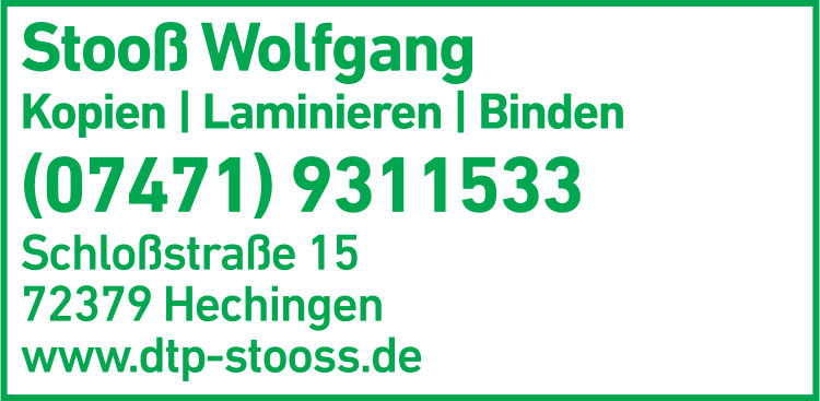 Copy + Medien Stooß 07471 9 31 15 33 Hechingen Schloßstr. 15 72379