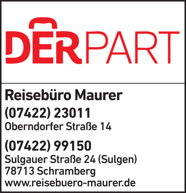Die Adresse von DERPART Reisebüro Maurer lautet: Oberndorfer Str. 14, 78713 Schramberg