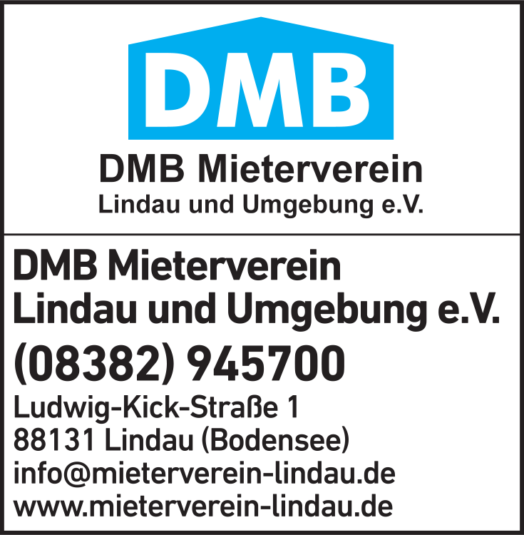 Die Adresse von DMB Mieterverein Lindau u. Umgebung e.V. lautet: Ludwig-Kick-Str. 1, 88131 Lindau
