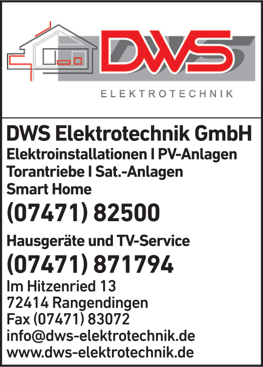 Die Adresse von DWS Elektrotechnik GmbH lautet: Im Hitzenried 13, 72414 Rangendingen