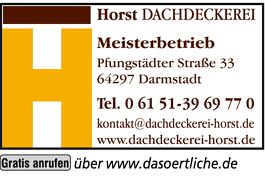 Die Adresse von Dachdeckerei Horst lautet: Pfungstädter Str. 33-35, 64297 Darmstadt