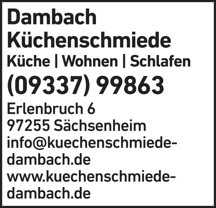 Dambach Andreas Küchenschmiede Dambach 09337 9 98 63 Sonderhofen-Sächsenheim Erlenbruch 6 97255 Sächsenheim