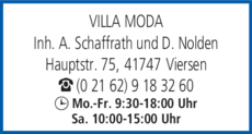 Die Adresse von Damenmoden VILLA MODA OHG lautet: Hauptstr. 75, 41747 Viersen