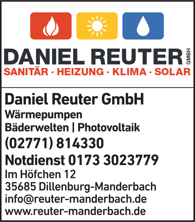 Daniel Reuter GmbH Heizung Sanitär 02771 81 43 30 Dillenburg Im Höfchen 12 35685 Manderbach 3.5 5 8