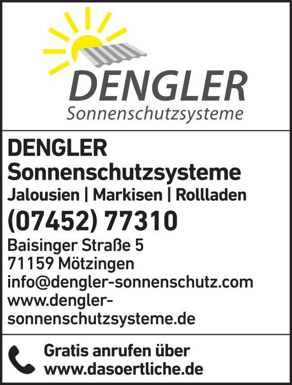 Dengler Sonnenschutzsysteme/Beschattung 07452 7 73 10 Mötzingen Baisinger Str. 5 71159
