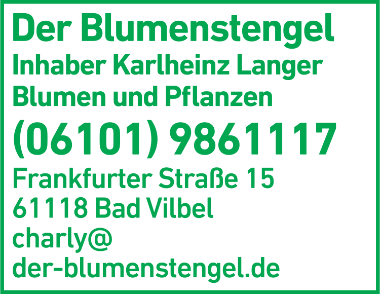 Die Adresse von Der Blumenstengel Inh. Karlheinz Langer lautet: Frankfurter Str. 15, 61118 Bad Vilbel