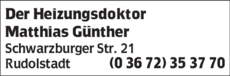 Die Adresse von Der Heizungsdoktor lautet: Schwarzburger Str. 21, 07407 Rudolstadt