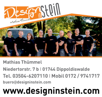 Die Adresse von Design in Stein lautet: Markt 21, 01744 Dippoldiswalde