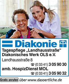 Die Adresse von Diakonie lautet: Landhausstr. 8, 15344 Strausberg