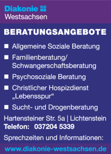 Die Adresse von Diakonie Westsachsen lautet: Hartensteiner Str. 5 a, 09350 Lichtenstein