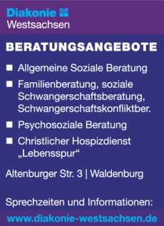 Die Adresse von Diakonie Westsachsen lautet: Altenburger Str. 3, 08396 Waldenburg