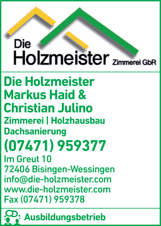 Die Adresse von Die Holzmeister Zimmerer lautet: Im Greut 10, 72406 Bisingen-Wessingen