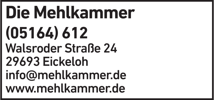 Die Adresse von Die Mehlkammer, Conrad Hogrefe lautet: Walsroder Str. 24, 29693 Eickeloh