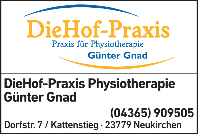 Die Adresse von DieHof-Praxis Physiotherapie lautet: Dorfstr. 7, 23779 Neukirchen