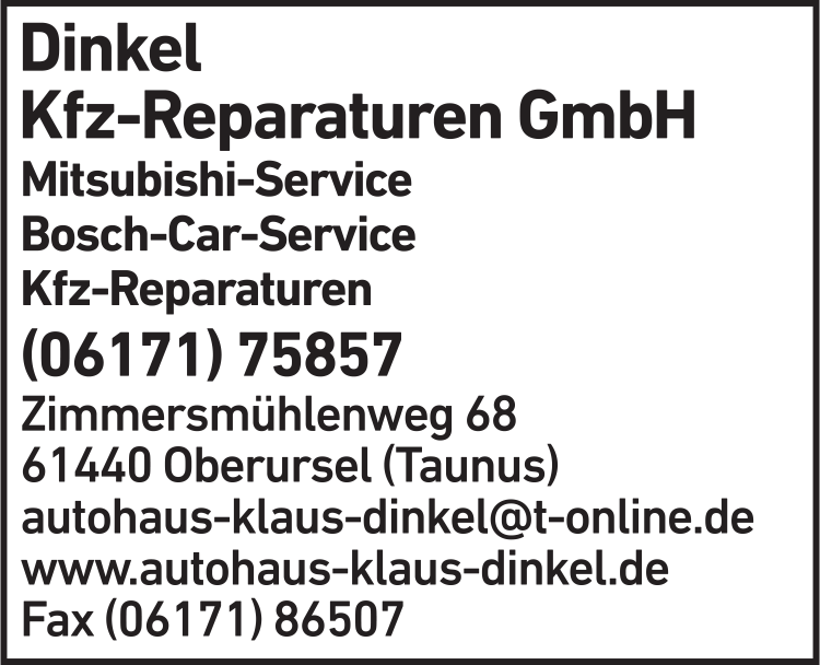 Dinkel Kfz-Reparaturen GmbH Autolackierung 06171 7 58 57 Oberursel (Taunus) Zimmersmühlenweg 68 61440 5 5 4