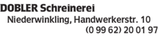 Die Adresse von Dobler Schreinerei lautet: Handwerkerstr. 10, 94559 Niederwinkling