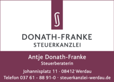 Die Adresse von Donath-Franke Antje lautet: Johannisplatz 11, 08412 Werdau