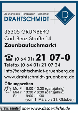 Drahtschmidt Grünberg GmbH & Co KG 06401 21 07-0 Grünberg Carl-Benz-Str. 14 35305 https://media.roeser-online.de/02/123/LOGO/000/248/812_200x100.png