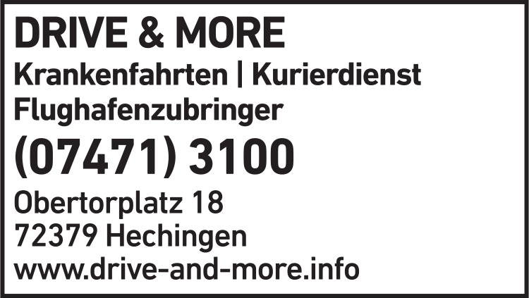 Die Adresse von Drive & More lautet: Obertorplatz 18, 72379 Hechingen