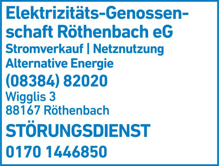 Die Adresse von EGR Elektrizitäts-Genossenschaft Röthenbach eG lautet: Wigglis 3, 88167 Röthenbach