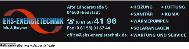 Die Adresse von EHS Energietechnik Heizung-Sanitär-Klima lautet: Alte Länderstr. 5, 64560 Riedstadt
