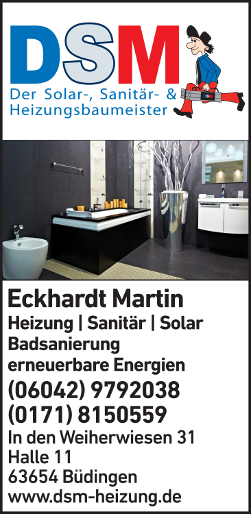 Eckhardt Martin Heizung - Sanitär - Solar 06042 9 79 20 38 Büdingen In den Weiherwiesen 31 Halle¬ 63654 de.teleauskunft.oetb.webapp2.detail.Graphic@6a349aa6