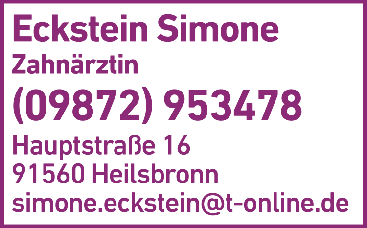 Eckstein Simone Zahnärztin 09872 95 34 78 Heilsbronn Hauptstr. 16 91560