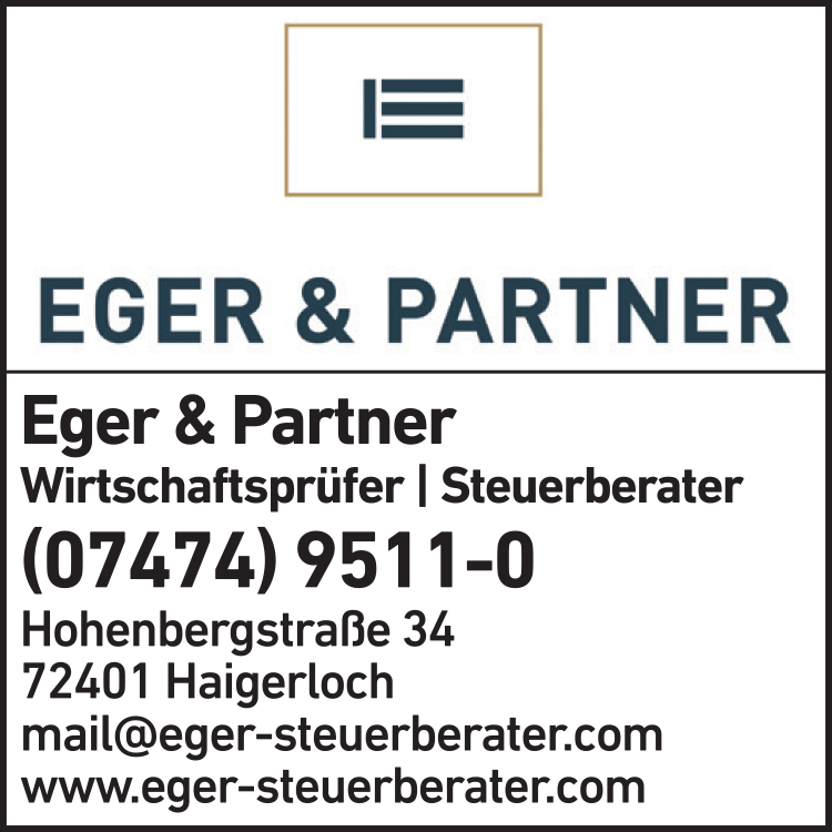 Die Adresse von Eger & Partner Dietmar Eger Steuerberater u. Wirtschaftsprüfer lautet: Hohenbergstr. 34, 72401 Haigerloch