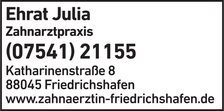 Ehrat Julia Zahnärztin 07541 2 11 55 Friedrichshafen Katharinenstr. 8 88045 5 5 7