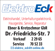 Wie sind die Öffnungszeiten von Elektro Eck Ebner & Kretzschmar GbR?