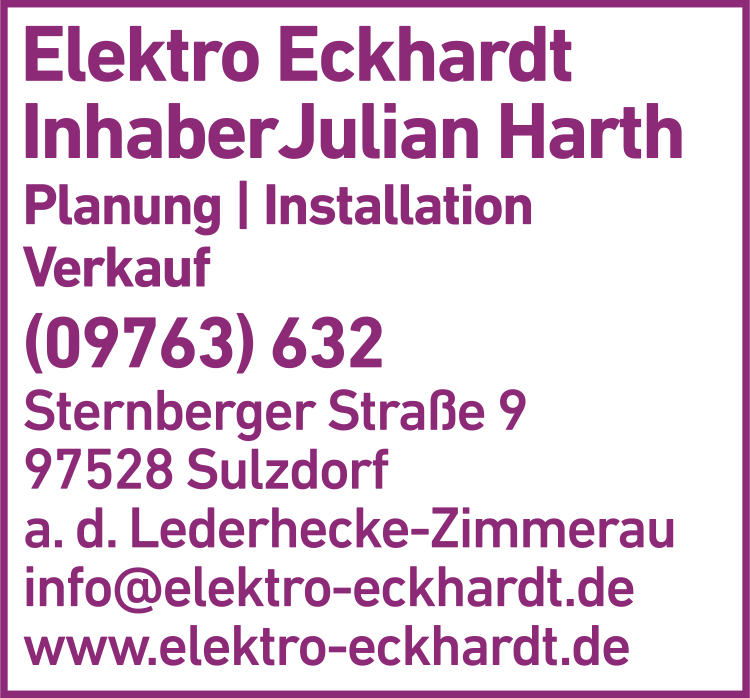 Wie lautet die Adresse von Elektro Eckhardt Inh. Julian Harth Elektro-Installation u. -Handel?