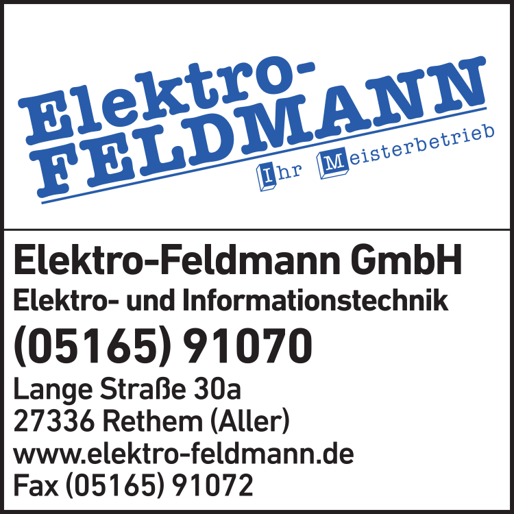 Die Adresse von Elektro-Feldmann GmbH lautet: Lange Str. 30 A, 27336 Rethem Aller