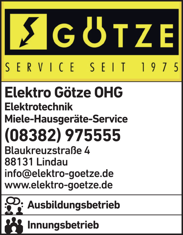 Die Adresse von Elektro Götze OHG Elektroinstallation lautet: Blaukreuzstr. 4, 88131 Lindau