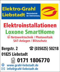Die Adresse von Elektro-Grahl lautet: Bergstr. 2, 01825 Liebstadt