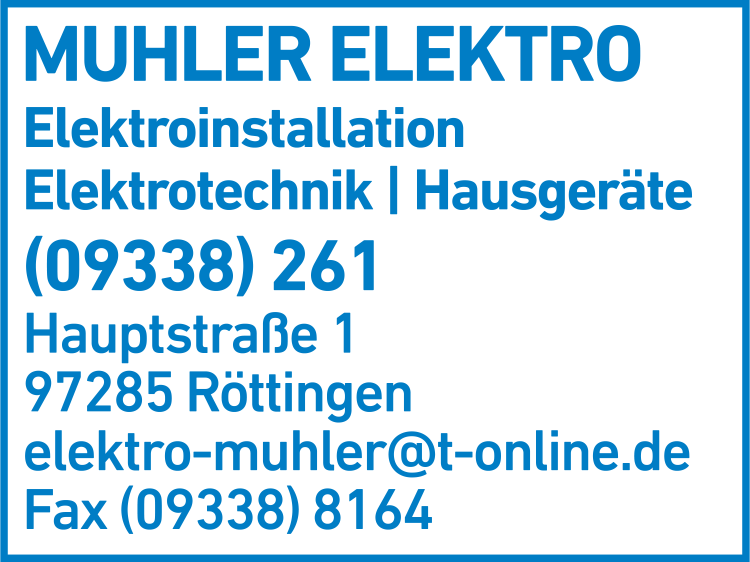 Die Adresse von Elektro Muhler lautet: Hauptstr. 1, 97285 Röttingen