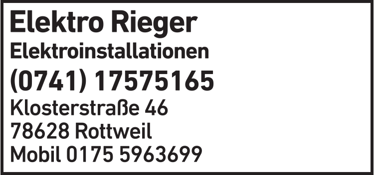 Die Adresse von Elektro Rieger lautet: Klosterstr. 46, 78628 Rottweil
