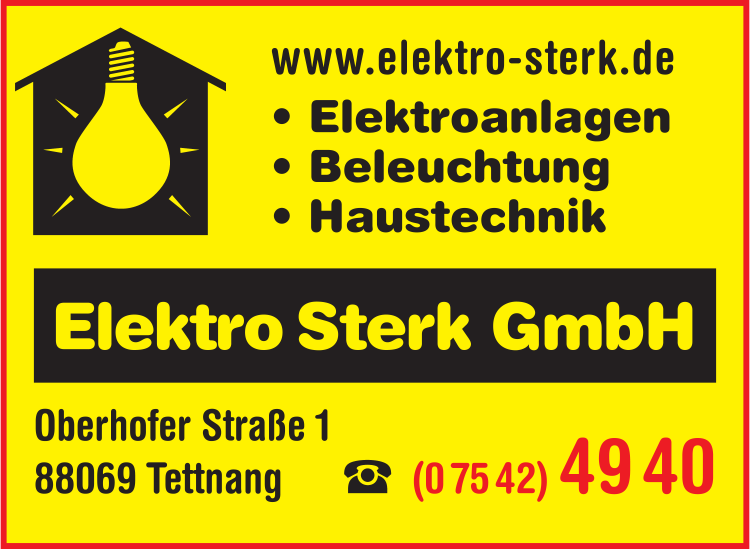Die Adresse von Elektro Sterk GmbH lautet: Oberhofer Str. 1, 88069 Tettnang