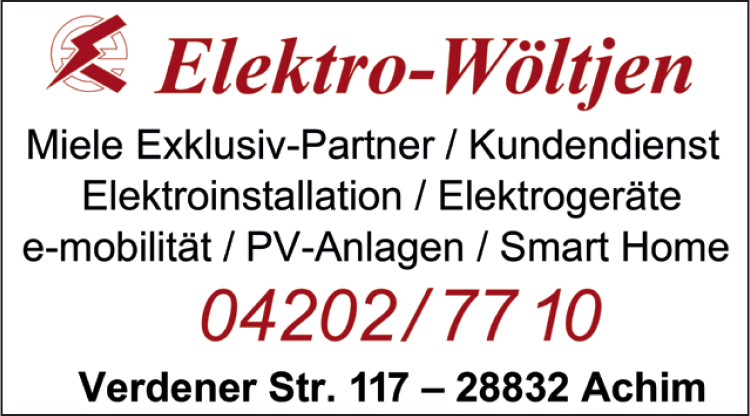 Die Adresse von Elektro Wöltjen lautet: Verdener Str. 117, 28832 Achim