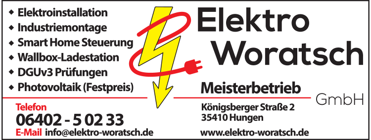Die Adresse von Elektro Woratsch Elektroinstallation lautet: Königsberger Str. 2, 35410 Hungen