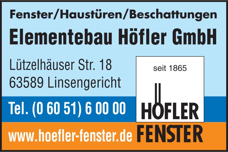 Die Adresse von Elementebau Höfler GmbH lautet: Lützelhäuser Str. 18, 63589 Linsengericht-Großenhausen