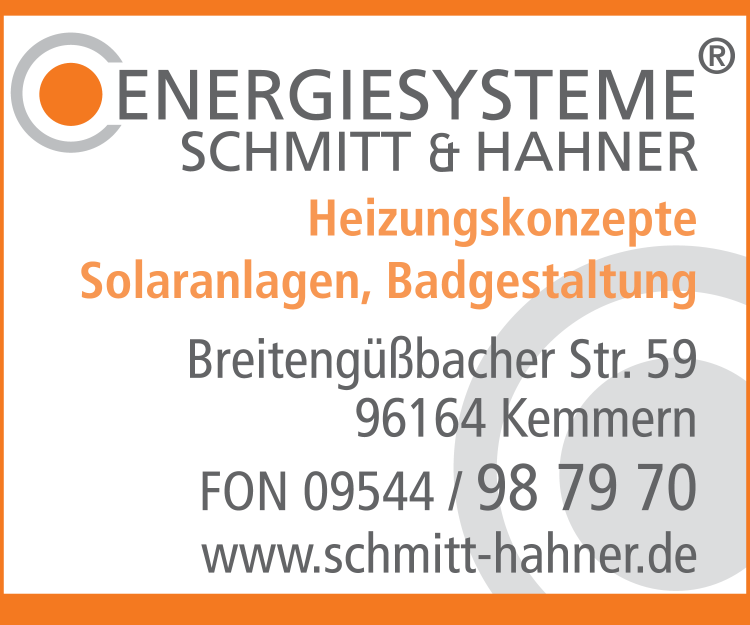 Die Adresse von Energiesysteme Schmitt & Hahner GmbH lautet: Breitengüßbacher Str. 59, 96164 Kemmern