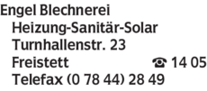 Wie lautet die Adresse von Engel Blechnerei?
