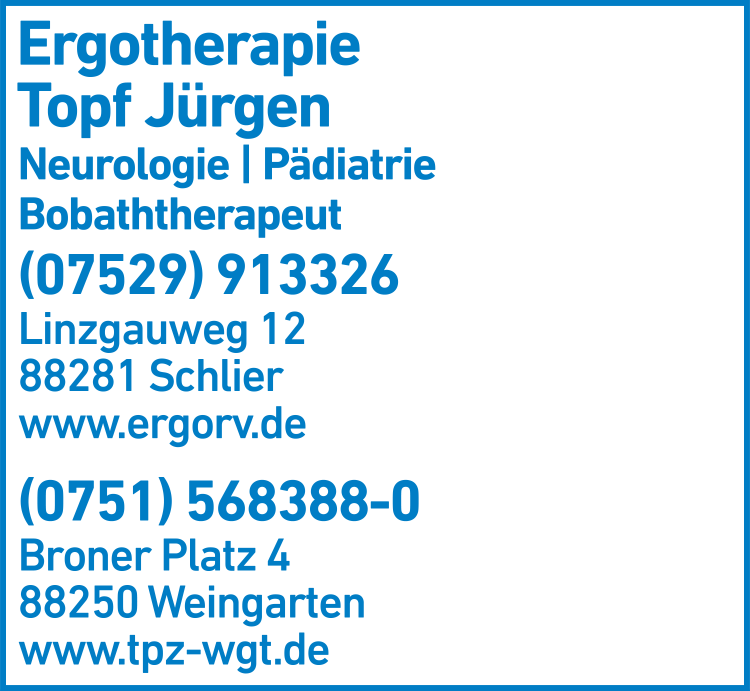 Ergotherapie Jürgen Topf 0751 56 83 88-0 Weingarten Broner Platz 4 88250