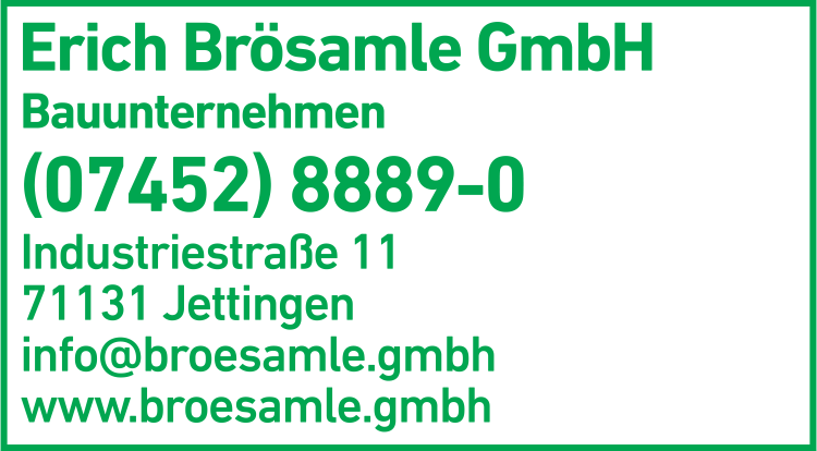 Die Adresse von Erich Brösamle GmbH lautet: Industriestr. 11, 71131 Jettingen-Württ