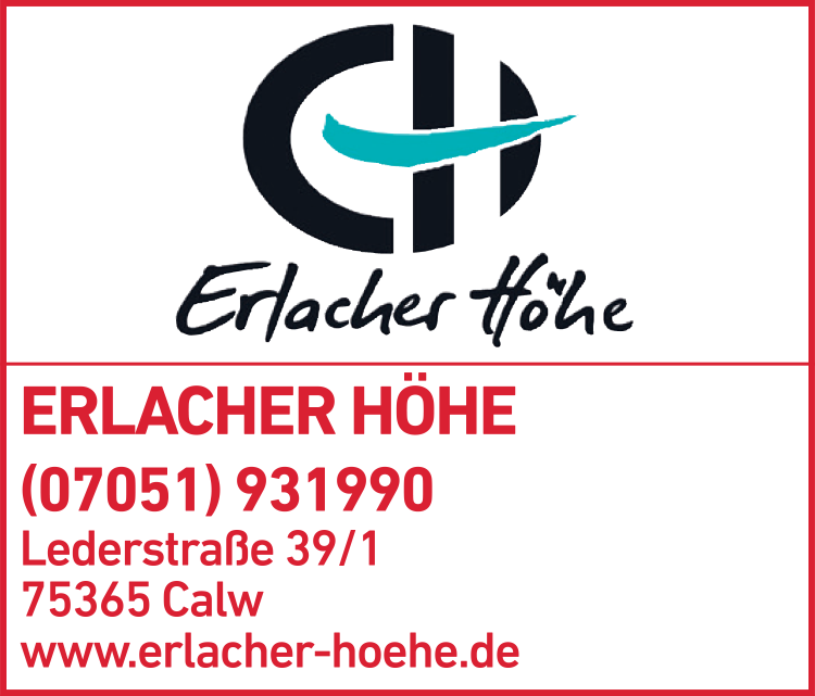 Die Adresse von Erlacher Höhe lautet: Lederstr. 39/1, 75365 Calw