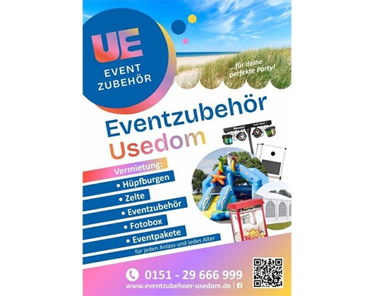 | Herzlich Willkommen bei Eventzubehör Usedom Sie sind gerade in der Vorbereitung zu einer Veranstaltung wie zum Beispiel einer Hochzeit, eines (Kinder-) Geburtstages, Einschulung oder Scheidung? Oder planen Sie große Veranstaltungen wie Stadt/Dorffeste. Für dieseund viele weitere Veranstaltungen sind wir DER Partner. Ganz nach dem Motto ? Das Leben ist zu kurz, um nicht zu feiern?! Bei unsfinden Sie Eventausstattung für nahezu jede Art von Veranstaltung. Wir bieten Ihnen die A |