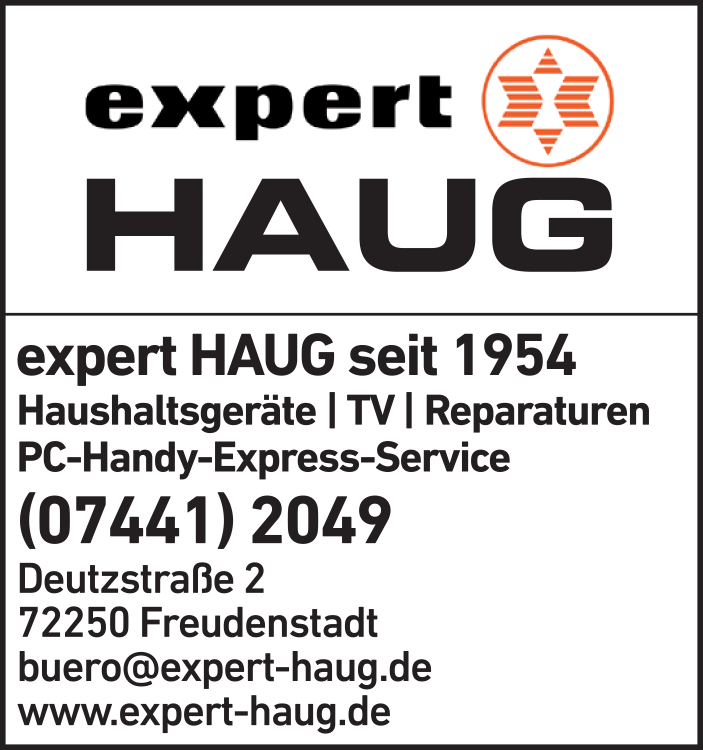 Die Adresse von Expert Haug lautet: Deutzstr. 2, 72250 Freudenstadt