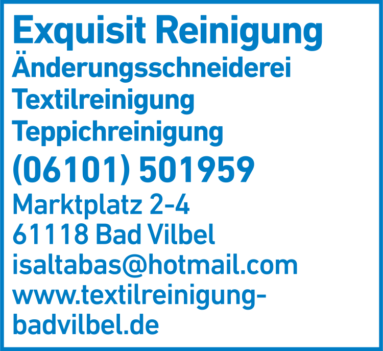 Die Adresse von Exquisit Reinigung Fachbetrieb lautet: Marktplatz 2-4, 61118 Bad Vilbel