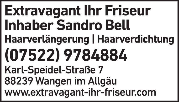 Die Adresse von Extravagant Friseur lautet: Karl-Speidel-Str. 7, 88239 Wangen